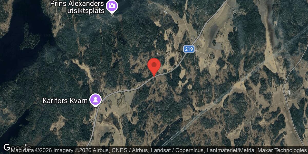 Den 6 april 2026 klockan 15:00 rapporterades flera träd som fallit delvis över vägen på Väg 219 mellan Nynäs och Gökbacken. Händelsen påverkar trafiken i båda riktningarna.